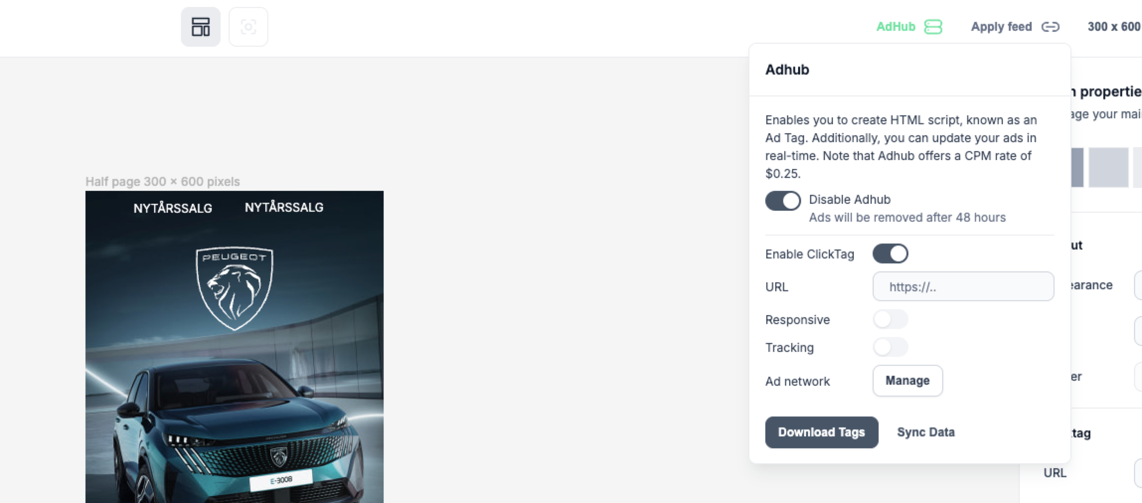 If your ad requires a click tag, AdHub allows you to define it easily. Click tags are essential for tracking ad interactions and ensuring proper functionality across different platforms. Simply enter the destination URL in the settings, and the click tag will be applied to your ad automatically.