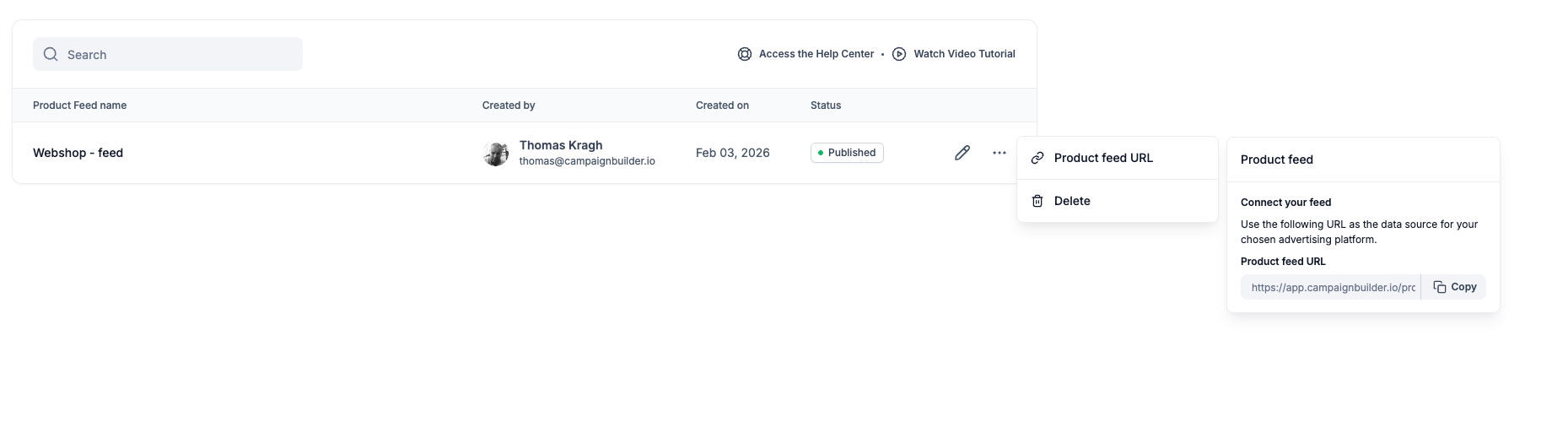 Paste your CampaignBuilder feed URL and choose how frequently the feed should be updated.