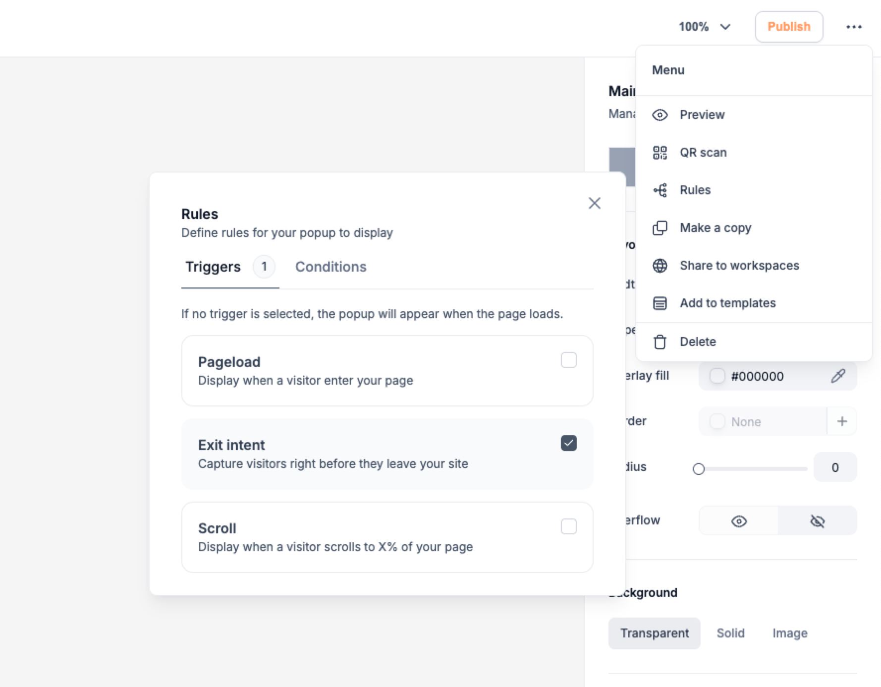 After designing the popup, set display rules so it shows at the right time - this could be after a visitor scrolls to a certain point, spends a set amount of time on a page, or shows exit intent.