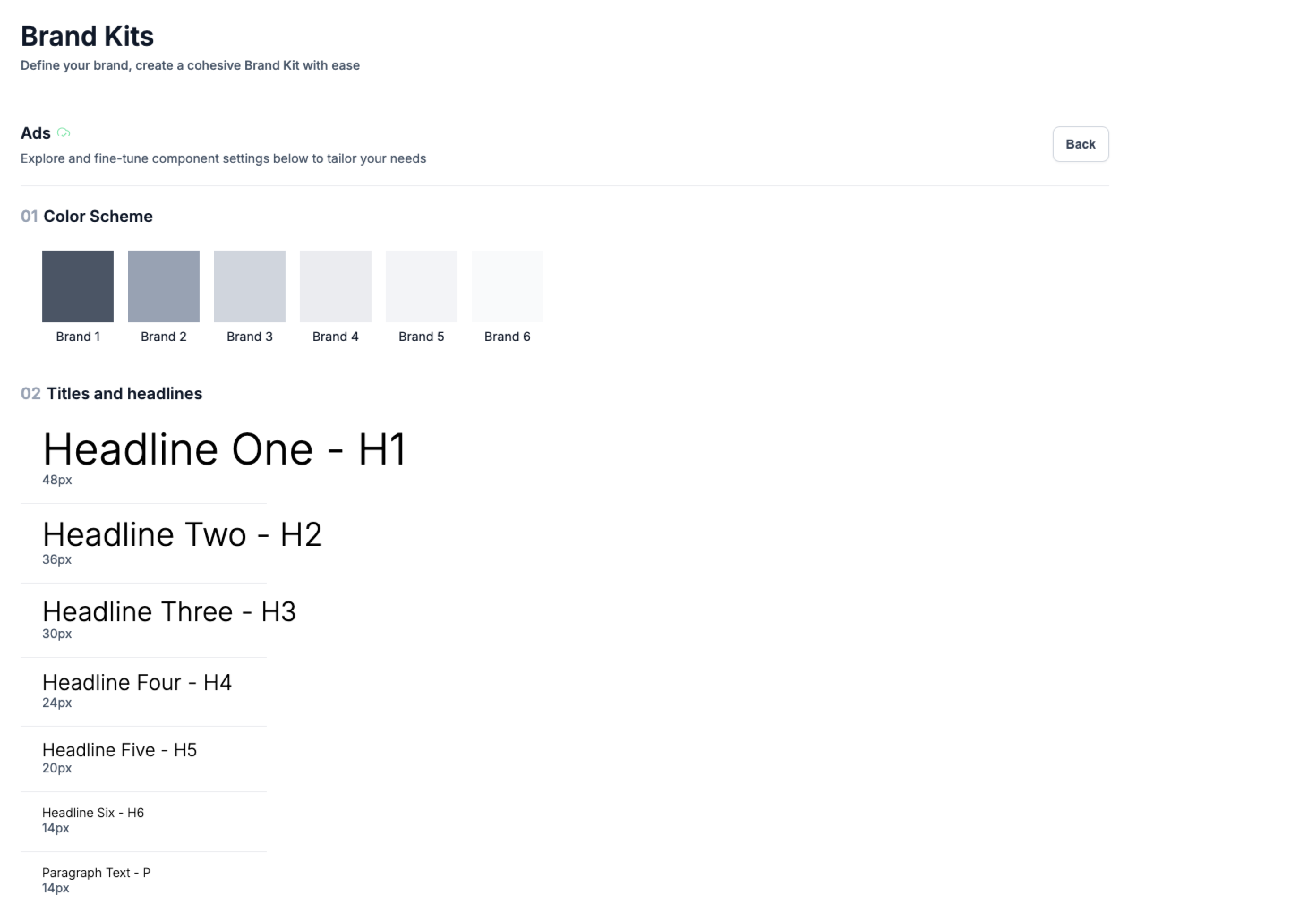 Define typography rules for headings, subheadings, and body text.Add custom color palettes to maintain brand consistency.